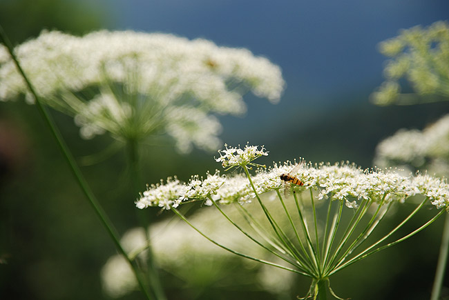 Statt auf Pflanzen habe ich mich heute auf die Insekten konzentriert, die dort zu tausenden (oder eher mehr) herumschwirrten. Ich habe leider mein Bestimmungsbuch nicht da, deswegen die etwas einfachen Namen (alles Schwebfliege...) ihr dürft mich gerne ausbessern.Als Erstes einmal eine fette Fleischfliegen (denke ich). Sie hat alle Bienen verjagt, die auf ihre Blüte kommen wollten.