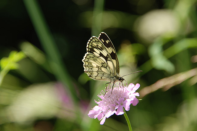 Der Schachbrettfalter hat brav posiert und blieb auf der einen Blüte sitzen.