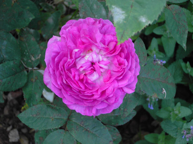 Tja, wirklich viel kann ich über ihre Blühfreudigkeit noch nicht sagen, ich habe sie erst seit letztem Jahr, da hatte sie schon geblüht und nicht nachgeblüht, heuer hat es etwas gedauert, mit den Blüten, die auch relativ klein waren, aber vielleicht sind da auch die Blattläuse nicht so ganz unschuldig. Gerade auf die RdV hatten sie es total abgesehen. >:(Angeblich soll die dunkle RdV ja nicht nachblühen, aber ich glaube, das schon jemand gegenteiliges berichtet hat.Laut Schultheis soll sie sehr wohl nachblühen.Mal schauen....