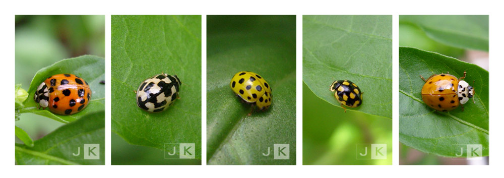 Diese asiatischen Marienkäfer sind eigentlich nicht schwer zu erkennen, sie haben 19 Punkte. Allerdings sind sie nicht so gleichmäßig gepunktet und gefärbt wie die einheimischen Marienkäfer. Die Grundfarbe geht von hellgelb bis knallrot. Es kommen ganz kleine bis ganz große schwarze Punkte vor. Teilweise gehen die Punkte ineinander über, sodass man das Gefühl hat, dass man einen schwarzen Marienkäfer mit gelben oder roten Punkten sieht.Ich hatte in unserem Blog vor einiger Zeit schon mal ein paar Fotos von Larve, Puppe und Käfer hochgeladen. Sollte Bedarf bestehen kann ich noch weitere Varianten des Käfers einstellen, wir haben sie hier in allen Formen und Farben ;-)Liebe Grüße, Heiner
