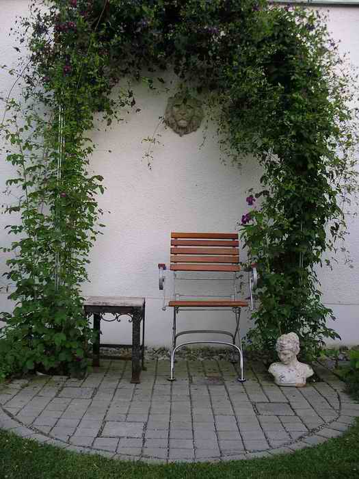 Außer mir kanns noch der Nachbar auf der anderen Seite sehen und meine Hunde auch ;DNein im Ernst, die beiden harmonieren wirklich gut farblich, beide gefüllt und samtig. Im letzten Jahr habe ich die Rosen Violacea und Rhapsody dazugepflanzt, aber davon sieht man noch nicht viel.Komm einfach anschauen!Gruß KarinDer Oberhammer!!! Kann's denn außer Dir noch jemand sehen? Wie sind denn so die Reaktionen?Vit. Purpurea Elegans und Vit. Mary Rose im Duett