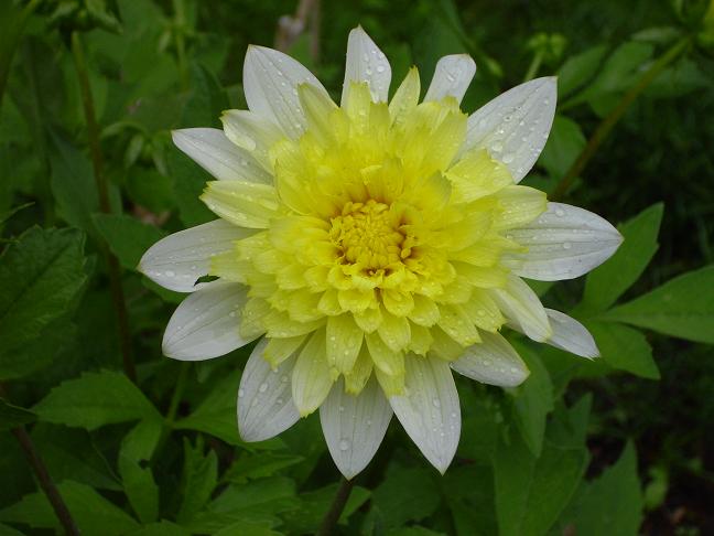 und nun gehts so richtig los mit der Blüte, die Dahlien-Sorte macht sich auch im Regen gut, finde ich.