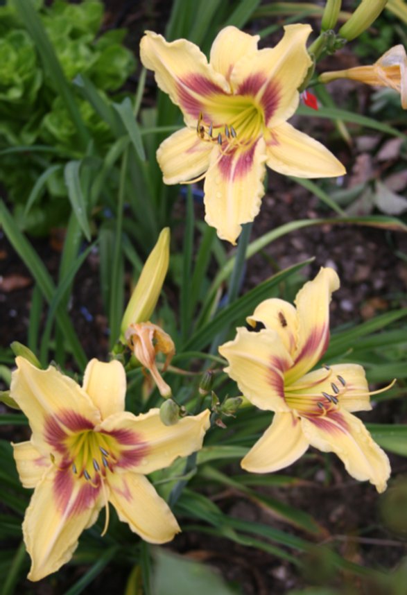 Nachdem gestern nicht eine Taglilienblüte im ganzen Garten geöffnet war, zeigten sich heute alle sehr großzügig; deshalb nochmals ein Bild des gelben Ufos, das bereits drei Blütenstängel geschoben hat - gesät wurden die Samen erst im Frühling des letzten Jahres!