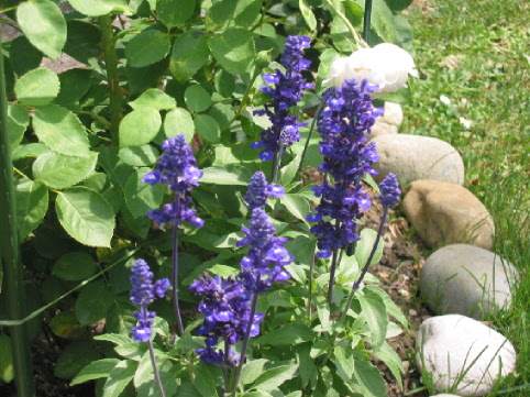 (@ juttchen : welche Bedingen hatten Deine Mohne ? welchen Boden ? Genügend Sonne?Oder hat gar nix gekeimt ? ) Hier mal ein paar Begleiter in meinen Rosenbeeten.z.B. Mehlsalbei in weiss oder blau . Kommen manchmal nach der 1. Blühsaison im nächsten Jahr wieder,auch wenn es immer heisst, er sein 1-jährig :