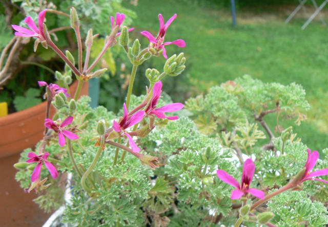 Vectis Glitter ist ja toll!Ich habe hier eine sehr wüchsige Pelargonie, die ich vor Jahren auch schon mal als Stämmchen gezogen hatte. Leider kenne ich ihren Namen nicht.