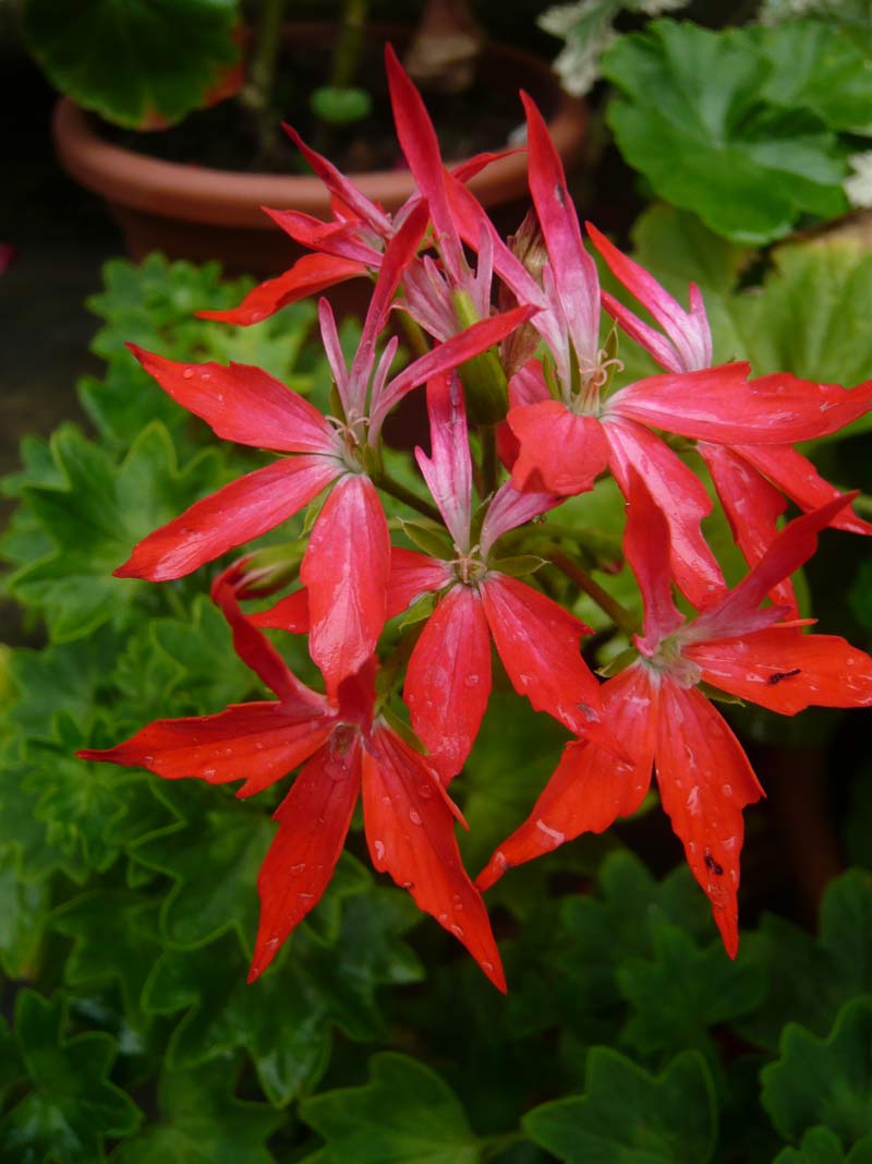 Was bleibt einem übrig wenn es in Strömen regnet? Nur gut das es kein Wind dabei aufgekommen ist.Hier eine schöne Pellargonie "Vectis Glitter" aus dem Jahr 1995