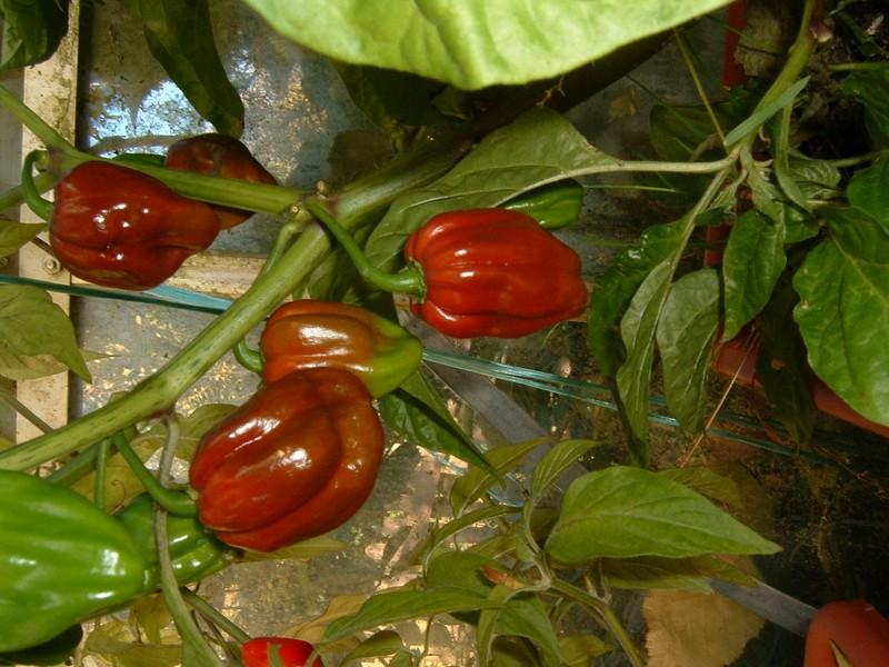Und noch eines meiner Chocolate Habanero.Sehen zwar aus wie leckere Schokolade, haben aber Schärfe 10 ;DEin Kollege der alle anderen Chilis (6-7) ohne mit der Wimper zu zuckeninkl. Samen verspeist hat von denen nur den Saft am Messer getestetund sie für höllisch scharf befunden 8)Leider lassen sie sich sehr schlecht trocknen (zu dick)Bye, Simon