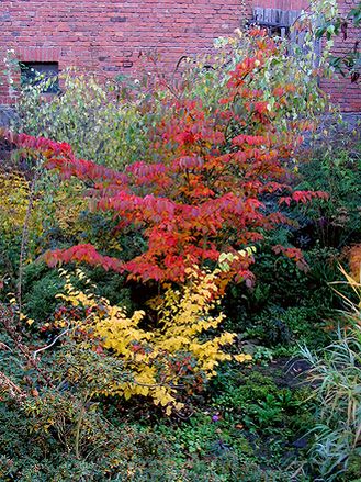 Dieser Herbst meint es besonders gut.Cornus kousa mit Corylopsis pauciflora