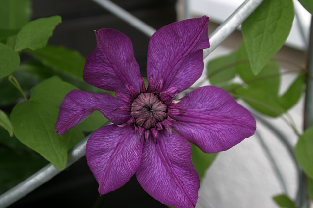 Elis, das müsste 'Cassis' sein. Zwar sehen die Photos bei Clematis on the Web anders aus - aber deine Blüte ist typisch für viele Bilder, die ich von dieser Evison-Clematis gesehen habe. Sie soll wohl, glaube ich, eine Kreuzung zwischen Venosa Violacea und Cl. florida sein. Soll aber winterhart sein.