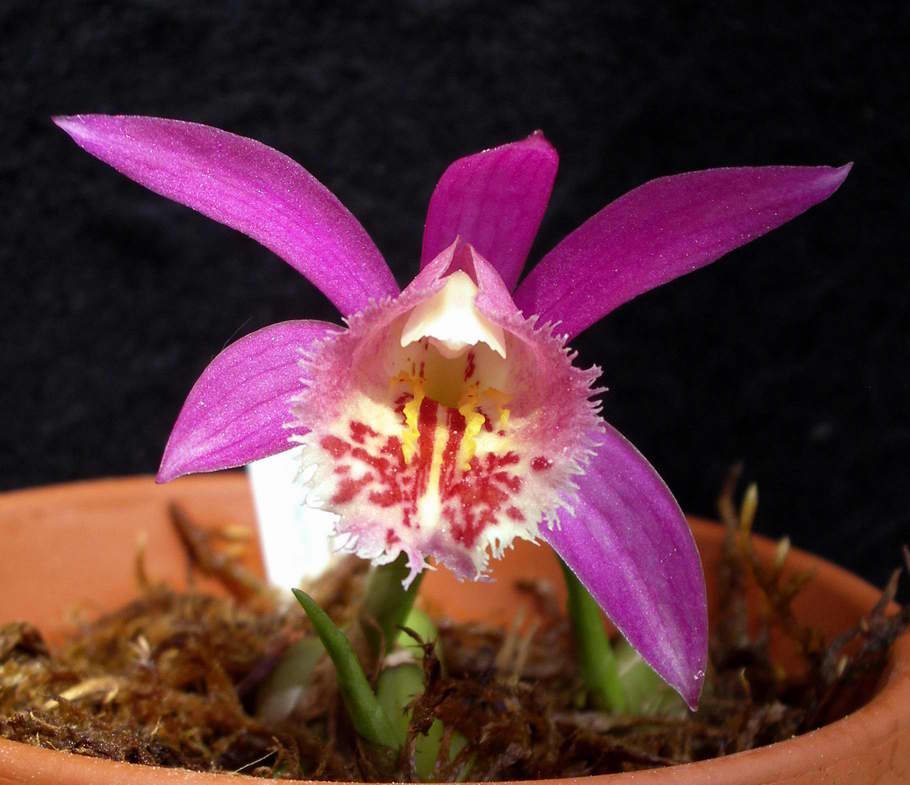 Eine sehr farbintensive Pleione ist Pleione Berapi ’Purple Sandpiper’ (Tongariro x bulbocodiodes ‘Yunnan’).