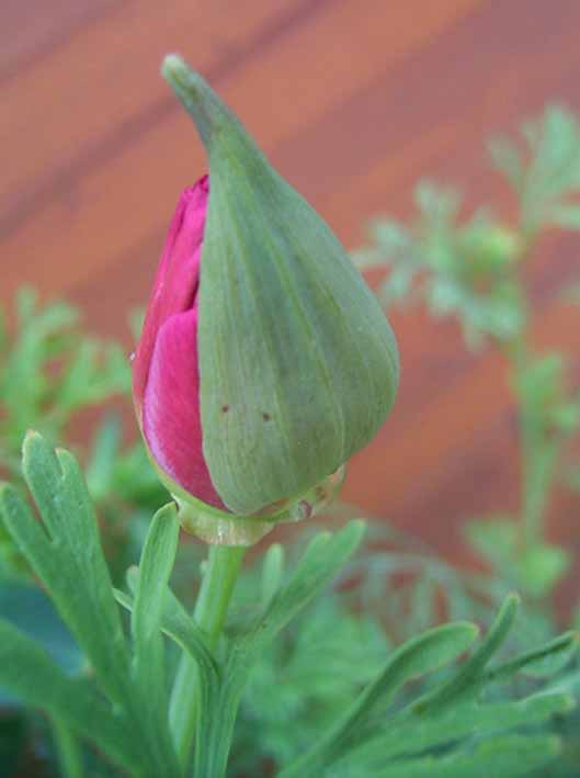 Aber am gespanntesten bin ich auf den Californischen Mohn. Den hatte ich noch nie und vorhin dachte ich erst Mal kurz: Hoppla, wo kommt denn da ein Rosenknospe her, es ist die Mohnknospe!