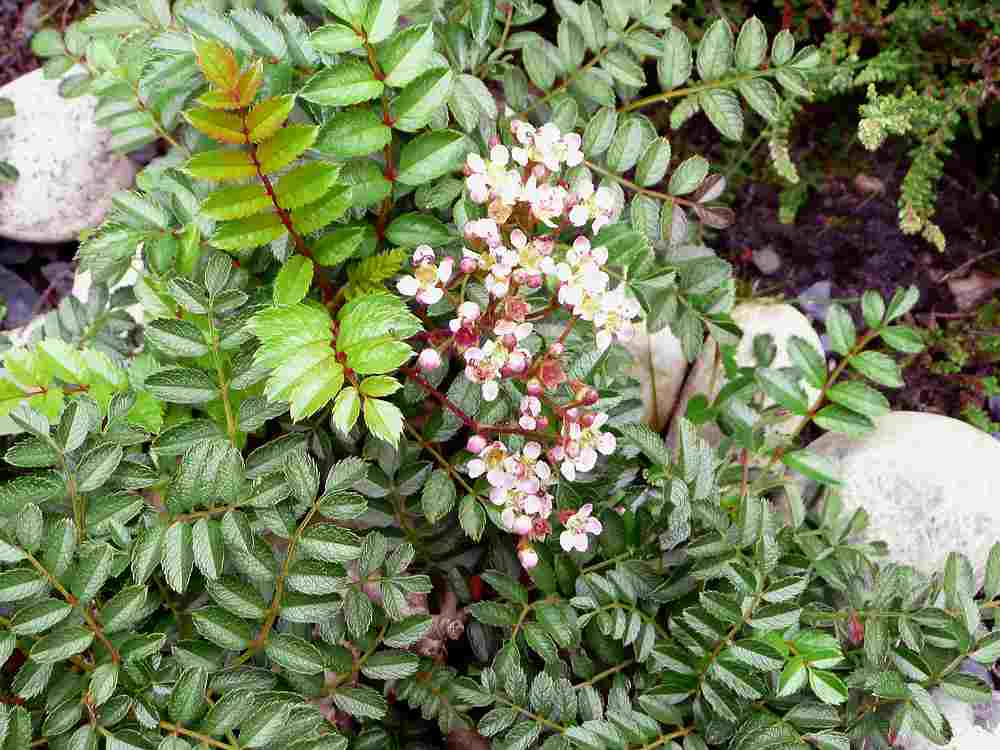Es gibt Auffälligeres, als diese kleinste Vogelbeer-Art der Welt: Sorbus poteriifolia. Sie kriecht mit knorrigem durch den Heidegarten und ist kaum 15 cm hoch. Jetzt blüht sie in diesem Jahr zum 2. Mal.