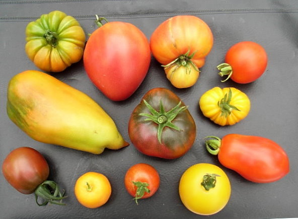 Beim schönen Sonnenschein werden nun einige Sorten reif, außer meinen üblichen Verdächtigen ;Dhier als neues erntereifes Mitglied in der Mitte die Andrewia (hatte ich schon im letzten Jahr und fand sie superlecker) zu sehendrumherum die gelbe Galina, die Stupice und Glacier, nebst unbekannter roten Chili und die scharfe Bulgarian Carrot