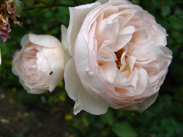 Hier ein Foto für Scilla.Ich wundere mich was für krätige Triebe Emiliy von AUstin, schiebt, auch erinnert sie mich sehr stark an Heritage, nur beim Farbton weiß ich nicht so recht, ob der paßt.Die Rose kommt von Daniel Schmitz in Belgien