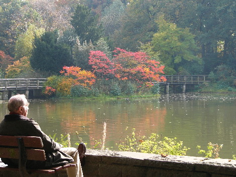 :Ich habe nur noch ein Bildnis von mir beim Fotografieren eines Gartenbewohners. Zu erkennen bin ich am langen Haar, gespiegelt im offensichtlich ordentlich geputzten Panzerkleid