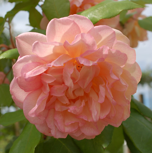 Blüte Nr. 2 - rechts ist ein Stück vom neuen Austrieb zu sehen.Heute morgen war sie übrigens noch eine dicke Knospe. In der Hitze geht jetzt alles rasend schnell.