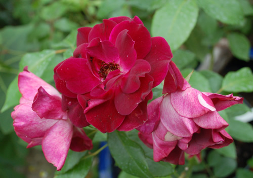 Die etwas dunkleren:Die Burgundy Ice zeigt hier auf dem Foto ganz schön ihre helle Aussenseite bei den beiden Blüten rechts und links: