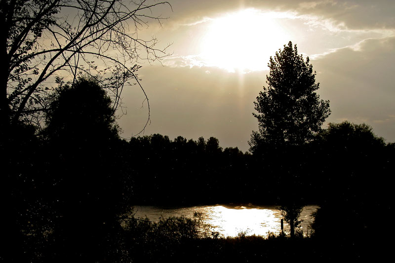 Das war die letzte Aufnahme an der Donau. Bedingt durch das Gegenlicht ist mir natürlich die Landschaft abgesoffen. Auch ein bißchen viel Geäst ist mit draufgekommen, aber die Stimmung gibt es gut wider.Wünsche eine gute Nacht ohne MückensticheEvi