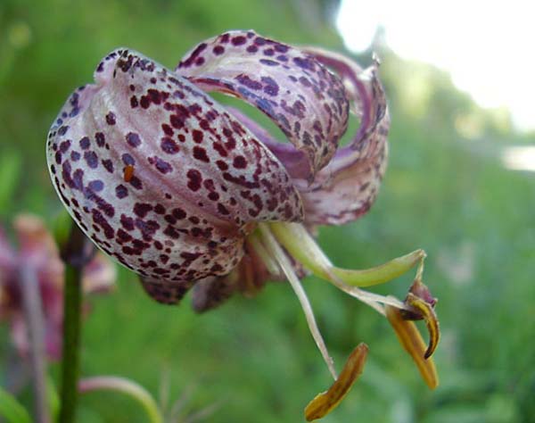 Lilium Martagon - Türkenbundlilieauf der ganzen Runde haben wir 2 Stück entdeckt, direkt neben dem Forstweg. Auf einem Blatt saß, ganz lieb und unschuldig - ein Lilienhähnchen