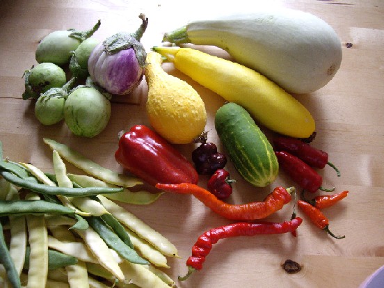Zucchini, Broccoli, Salat, die erste Chili, Stangenbohnen und wenige Tomatenauf Pilz-Jagd darf ich wegen der Pilzschutz-Regelung erst am Sonntag