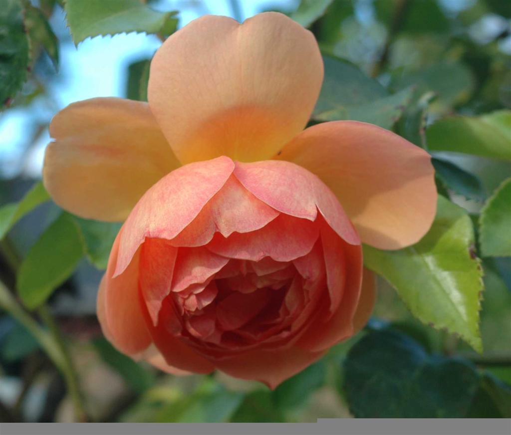zum Abschluß die Aufnahme einer Rose aus einem Fremd-Garten, die ich letztes Jahr schon sehr bewundert habe. Die Farbe ist zwar nicht ganz so meine Wahl, aber wer sich durch eine ca 250cm hohe Brombeer-Hecke nach oben kämpft, sollte hier unbedingt verewigt werden (ein Steckling scheint was zu werden