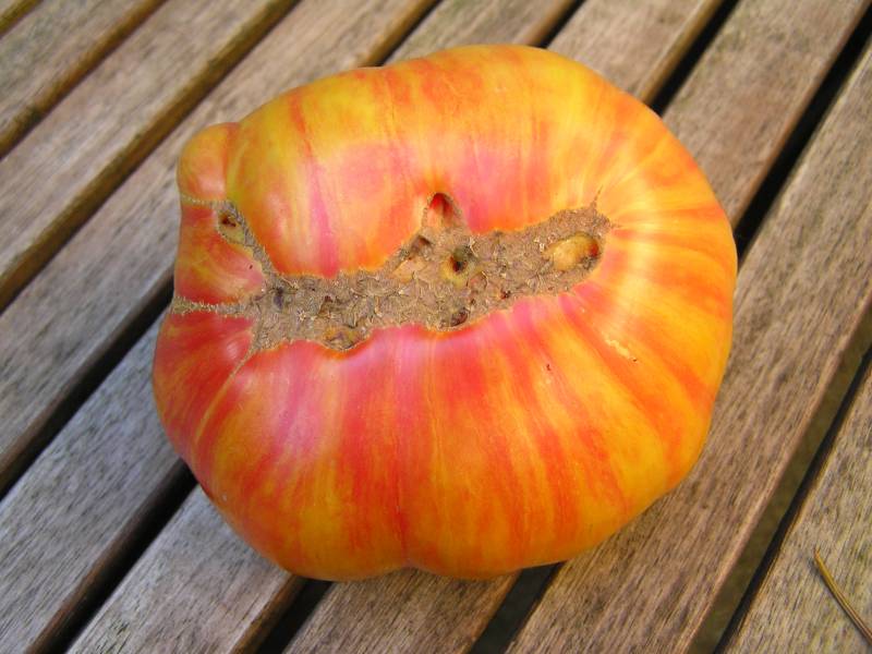 Die große helle auf dem ersten Bild ist ein Weißes Ochsenherz.Hatte über 500gr, war aber ne Bunkerfrucht.Auf dem zweiten Bild siehst du rechts eins in regulärer Form