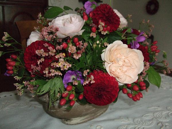 ich schneide auch gerne Sträuße im Garten, zum verschenken und als Tischdeko.Samstag hatten wir Gäste und da habe ich mir den für die Tischdeko gesteckt...