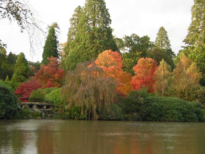 )  Anweisungen erteilt:"Two feet to the left. Just behind the big Nyssa"  Ooh! Caracol dürfen wir auf noch mehr Fotos hoffen?Blühten die Eucryphias noch?The gardens are considered to be at their best on sunny days in the second half of October when the blue waters of the lakes set off the magnificent autumn colours. The tupelo trees, azaleas, maples, swamp cypresses, eucryphias and birches contribute to a stunning spectacle which is unrivalled in the British Isles.