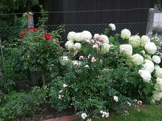 bei mir steht Ballhortensie Annabelle neben/hinter dem Hängeröschen Gemma. Das geht seht gut, ich muss bloß aufpassen das die Hortensie nicht zu groß wird für den Platz. Links neben Gemma steht ein Heidefeuer Hochstamm. Schön bunt. ;DLeider ist die Gemma jetzt fast verblüht und wirkt auf dem Foto nicht mehr so üppig.was haltet ihr eigentlich von hortensien als rosenbegleiter????ich finde diese gruppe immer faszinierender und die langsam wachsenden sträcuher wunderschön...in der bretagen wachsen oft rosen zwischen und neben hortensien, was überraschend gut zu gehen scheintich ahbe mir eine hortensie mit gelb-grün-weiss panaschiertem laub mitgebracht: hydeangea macrophylla tricolor