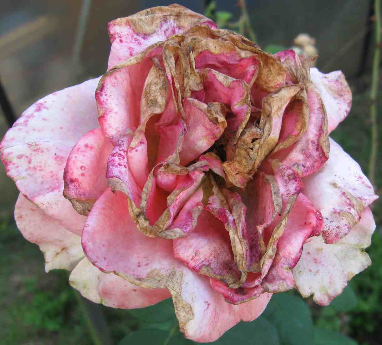 Diese Rose sieht meistens noch fast "taufrisch" aus, wenn sie ihre Blütenblätter abwirft .Kurz nach dem Aufnehmen dieses Bildes hat sie die Blüte dann auch verabschiedet