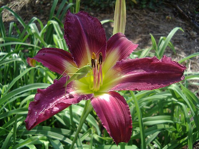Ich weiß, es ist viel verlangt, aber mit der Kenntnis der Eltern (leider nur von Bildern) wird die Erwartung an die Sämlinge schon in eine gewisse Richtung gelenkt. ;)Ich hab auch nichts gegen schlichte Formen und daher noch was Einfaches, nur mit einem jugendlichen Heupferd dekoriert (Dallas Star x Trahlyta) x Spirit Of Sapelo. Die Temperaturen sind heute auch schon wieder sommerlich.Jetzt bin ich froh über meine Spätzündersämlinge, sie sorgen für eine Saisonverlängerung.