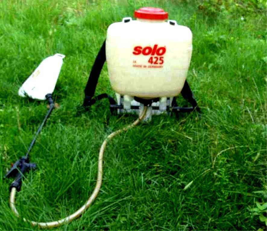 ein unersetzliches und hervorragendes werkzeug ist mein roundup-sprühgerät. man beachte den spritzschirm, mit dem abdrift verhindert wird.natürlich kann man mit dem gerät auch alles andere versprühen, auch "bio"aufgüsse. diese art der rückenspritzen finde ich um längen besser als die üblichen luftpumpendinger, die auch sehr unangenehm auf dem rücken liegen. meine wunderwaffe ist auch sehr gut verarbeitet.