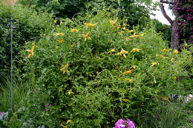 Habe bei einem Tag der offenen Gartentür in der Ortenau Mitte Juni eine überreichblühende gelbe Clematis gesehen und nach dem Namen gefragt, es war eine Bill Mc Kenzie, sie wuchs an mehreren Stellen im Garten. Weiß ja nicht ob es Dich interessiert, vielleicht hast Du ja noch Platz für die.