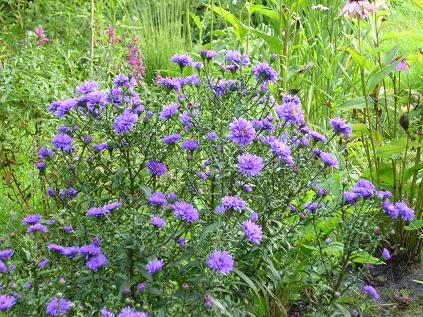 und die ersten Blüten von Aster novi-belgii 'W.Churchill', noch ein wenig mickerig.