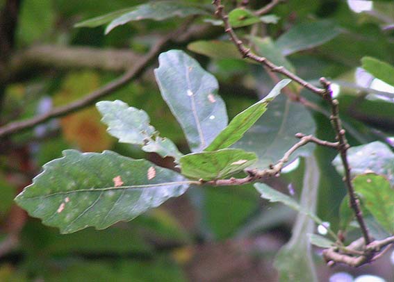 Kann mir gar nicht vorstellen, dass solch Besonderheiten auf einem Friedhof stehen. Obgleich der Mensch schon immer das Beste den Toten vermacht hat. Ich tippe auf Quercus x turnerii, nur sind mir die Blätter etwas zu lappig.