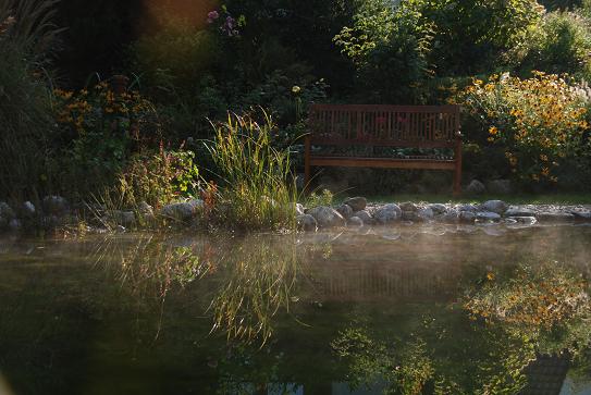 Heute morgen war es so kalt (Reif), dass der viel wärmere Teich gedampft hat.VLG; Katrin