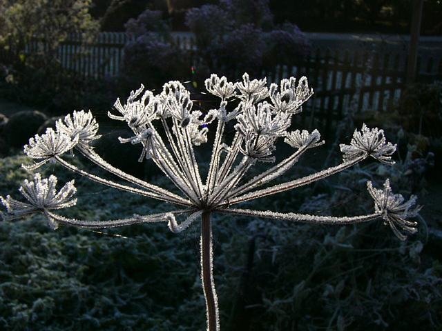 Ich habe eine Diaschau mit meinen Reifbildern zu diesem Thema anzubieten.http://www.bluemchen-auslese.de/index.php?seite=dia_reif-januar.php"Reiftauglichkeit" ist für mich bei Stauden ein wichtiger Aspekt, da kommen die Konturen eines Blattes heraus und die Form der Blätter wird betont. (OT: warum ist es gerade der Rand der Blätter, welcher Reif ansetzt? wird da das Wasser ausgeatmet? ist es dort kälter/wärmer?)Silhouette ist bei Schnee wichtig, allerdings werden die meisten Stauden dann auch gleich dauerhaft von ihm zu Boden gedrückt. Deshalb sind natürlich Buchs und andere haltbare Formgeber der bringer für den Winter.