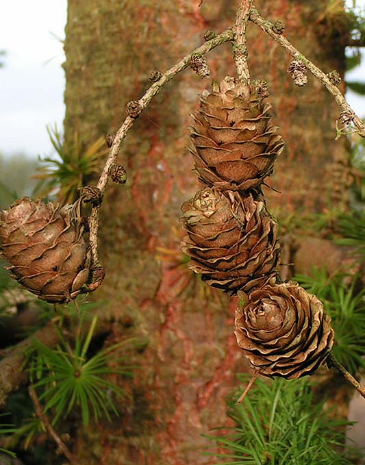 Amethystperlchen... :DSo macht der Herbst uns doch Freude. Mit poetischen Zwischentönen. Schön wieviele Leute hier das Kleine ehren. :)Nicht vergessen wollen wir aber auch die zahlreichen Zapfen. Hier von Larix kaempferi , der japanischen Lärche.Davon habe ich im Anfängerrausch gleich 3 gepflanzt vor 6 Jahren. Die sind mir jetzt über den Kopf gewachsen und leider auch zu grenznah an Bäuerleins Land.