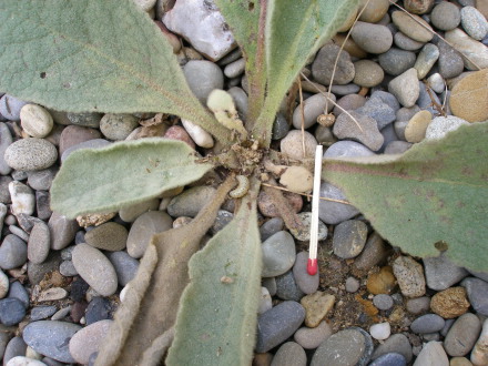 Hallo Susanne, danke fuer die schnelle Antwort.Vielleicht hast Du Recht, dass es fuer die Schaeden verschiedene Ursachen gibt.Wer die Blattloecher macht, habe ich bisher nicht live gesehen.Das koennte Dein Wollkrautmoench sein.Aber fuer das Absterben der Knospen sind definitv die Raupen verantwortlich: Nachdem ich die Raupen an der ersten Pflanze entdeckt hatte, untersuchte ich alle anderen Koenigskerzen: die aeusseren Blaetter sind erst noch intakt, die Mitte stirbt zuerst ab, und es finden sich bei allen unter der abgestorbenen Knospe( leider auch unter den noch gesund erscheinenden) bis in den oberen Teil der Pfahlwurzel ein "Nest" von vielen Raupen verschiedenen Alters von wenigen Millimetern bis ca. 1,2 cm Laenge.Ich habe versucht sie abzusammeln: vielleicht koennen einige Pflanzen nocheinmal knospen, was ich aber sehr bezweifle. Ich werde einfach noch einmal Verbascum aussaen, diesmal gezielt- zum Glueck habe ich noch viele Samen.Falls jemand auch noch welche wuenscht , schicke ich sie gerne zu.GrussMablu