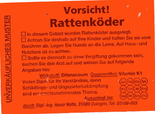 So nun habe ich erst mal das bei mir ausgelegte Rattengift beseitigt. Es war aber kein Tierchen bei mir zu Gast.Es stimmt es ist auch für Mensh und Tier gefährlich.Hier der Warnungshinweis