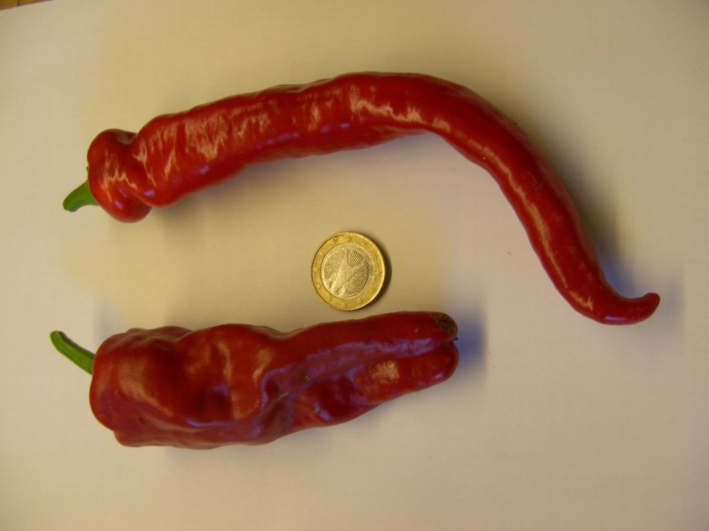 hier zwei sehr gute paprikasorten:oben die "jimmy nardello", die prima schmeckt, wenn man sie im backofen röstet, unten die "gernika" für den rohverzehr, saftig, deutlich nach apfel schmeckend und leicht scharf.