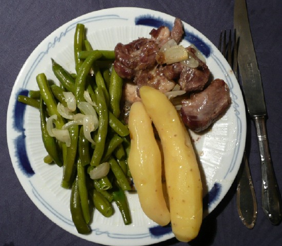 Abgesehen vom Lamm waren alle Zutaten aus dem Garten. Bohnen gibt es noch immer frisch vom Beet.
