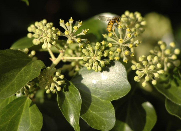 Diese grüne "Wand" besteht aus Efeu, der einen alten Holunder komplett durchwachsen hat.