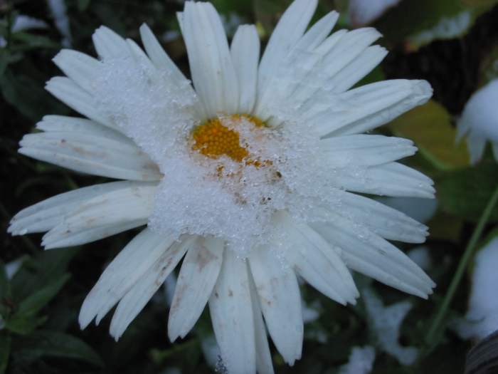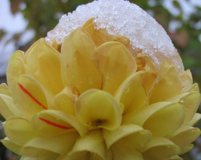 ich gebe mich geschlagen, der Sommer ist zu Ende- Dahlie mit Eiskrönchen