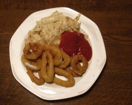 @Klaus peter.vorhin beim kochen, lächelte meine Frau und meinte,das gibt es aber sonst nirgens..Calamari im Teigmantel mitfisch waere auch mal wieder gut.danke fuer die anregung.