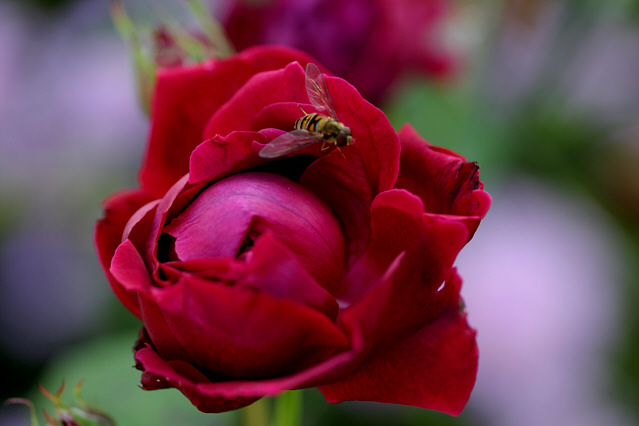 späte Knospe: Rokoko (im Hintergrund das Rot des Pfaffenhütchens)