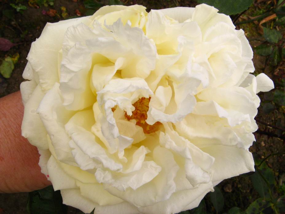 Frau Mathilde Bätz eine schöne alte TH.Ich mußte für das Foto die Blüte nach einem kräftigen Schauer leicht stützen.