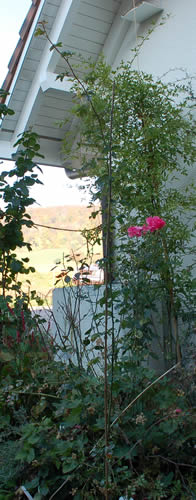 Husch, Dein Anliegen in Ehren! Sieh mal meinen Archiduc Josepf in Teerosen an. Oder Comtesse de Leusse! Das ist der Unterschied!Die meisten von uns hier bemühen sich, wenn es geht, Habitusbilder zu Blüten einzustellen. Es braucht also keinen erhobenen Finger.Genauso dasselbe als die nette "Anmerkung" eines Rosenbetrachters zu Tropfen auf den Rosen war, ob wir das eigentlich schön finden. Schöne Blütenbilder zu zeigen macht klar Spass, aber nach jedem Regen oder Uebernachttau die Blüten abzutrocknen geht auch nicht.Also, ich meine, wir bemühen uns, diese z.T. langjährige Anliegen umzusetzten, ab und zu gelingts zu unserer Freude!Um Habituspflanzen so richtig zu Gemüte zu führen, schlage ich vor, dasselbe zu tun was wir, GG und ich immer mal wieder machen. Wir grasen Privatgärten, Rosarien, (Bücher und Internet) und Rosenanlagen ab um die Vorstellung vom Habitus einer Rose in etwa zu erhalten.Dazu kommt aber noch, dass die selbe Rose an verschiedenen Orten einen Zwergwuchs bis zur Monsterdimension zeigen kann.Niemand stellt hier den Anspruch auf Vollständigkeit in Bezug zu gezeigten Bildern. Jedes einzelne Forumsmitglied ist selber bemüht, möglichst viele und umfassende Informationen über "seine" Rose herauszufinden. Gerne stellen wir diese Informationen hier allen zur Verfügung.Zudem gibt es ja noch die Suchfunktion HMF wo die Grössenangeben laufend korriegiert werden.Ich verweise wieder einmal zu einer meiner (von vielen anderen) Rose Gabrielle Noyell, die mit 120 cm im HMF angegeben war, bei mir aber 225 hoch ist. Oder Jean Jaques Voirol der ebenfalls mit 120 cm angegeben war und nun bereits auf 205 ist, aber noch weiter wächst, um nur zwei zu nennen. Hingegen der Habitus des Scarmans Golden Rambler, der seit 5 Jahren bei 120 trödelte und nun endlich einen 200 cm Trieb bildete, aber als 600 cm Rambler beschrieben ist, zeigt nur, dass jeder Garten andere Wachstumsbedingungen aufweist und so auch nur bedingt übertragbar ist.Wahrscheinlich ist das alles OT und Roro wird mir gleich die Leviten verlesen. Ich stelle nachfolgend gleich zwei Bilder ein, da kannst Du den Habitus sehr schön sehen. Für Bildbearbeitung fehlt mir schlicht die Zeit, die Technik und das Wissen.