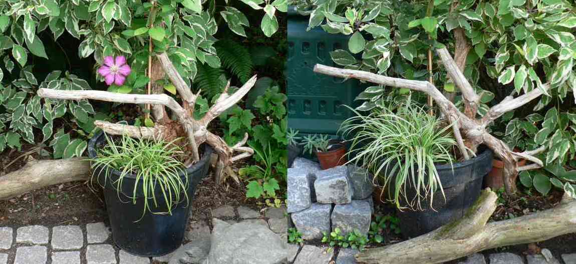 'silver Sceptre' macht sich übrigens auch ganz gut im Topf. Hier sieht man deutlich die andere Wuchsform (und den Zuwachs). Das linke Foto ist vom 8.7. und das rechte vom 20.8.
