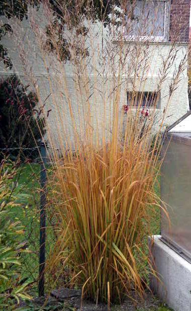 Die Gräser sollten mindestens 80 cm, idealer Weise 100 cm bis 120 cm und höchstens 150 cm hoch sein. Der Wuchs muss nicht sonderlich straff sein.Molinia braucht, glaube ich, mehr Feuchtigkeit, als ich ihr bieten kann.Hast du das Bild gesehen, wo das goldene Gras hin soll?Da schau mal. und Danke Lilo